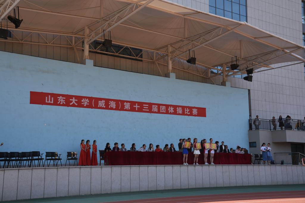 5月14日中午,第十三届健美操团体操决赛在学校田径运动场举行,威海校区党工委副书记赵玉璞、体育教学部叶军堂书记、张颖主任、学生工作处副处长刘会刚等相关领导与各院师生代表共同观看了比赛,体育教学部健美操老师曲爱宁担任裁判长。决赛以学院为单位,分大团体和小团体分别进行比拼。经激烈角逐,翻译学院、文化传播学院获得小团队一等奖,商学院、机电与信息工程学院获得大团队一等奖。