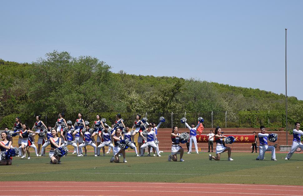 首先出场的是海洋学院,他们伴着律动的节拍变换着缤纷的队形,用整齐的步伐诠释着“海之骄子”的蓬勃朝气。紧随其后的是来自艺术学院的“舞者”,他们将健美操与爵士、拉丁、民族舞等多个舞种结合,一出场便吸引了大家的目光,托举、劈叉、侧翻等多个高难度动作的灵巧完成,更引得台下掌声不断。数学与统计学院代表队巧妙利用绸带,队员们在绸带中穿梭跳跃,最后拼成的“绸带花朵”引发了观众的惊叹与称赞。文化与传播学院代表队的表演在栩栩如生的舞狮中拉开序幕,结合京剧、武术、古典舞、现代舞等元素,为观众带来了一场视觉盛宴,而表演最后的亮相动作致敬了“五四一百周年”,再次点燃了观众的热情。法学院代表队的开头音乐为《名侦探柯南》主题曲,一开场就吸引了观众们的兴趣,队员们步伐整齐,动作刚柔并济,极具气势的表演赢得场上的阵阵掌声。小团队比赛中最后一个出场的是翻译学院,他们将古典元素与现代元素巧妙结合,动感与柔美在舞姿中相得益彰,最后亮相时,队员们用翻飞的彩带拼成“CHINA”字样,惊艳全场。在大团体比赛中,由东北亚学院和空间科学与物理学院共同组成的代表队以精彩的扇子舞,展示着他们的青春活力,迅速有序的队列变化和激昂的鼓声,也传达了他们拼搏进取的信念。紧随其后的是身着红白相间赛服的机电与信息工程学院代表队,他们身上火红的服装代表着如火的热情,他们的热烈表演也点燃了现场的激情。最后出场的商学院代表队的队员们身着金光闪闪的队服,伴随着欢快的音乐,在律动的节拍中不断变换队形,表演整齐有序,动作强健有力,将比赛推向了高潮。