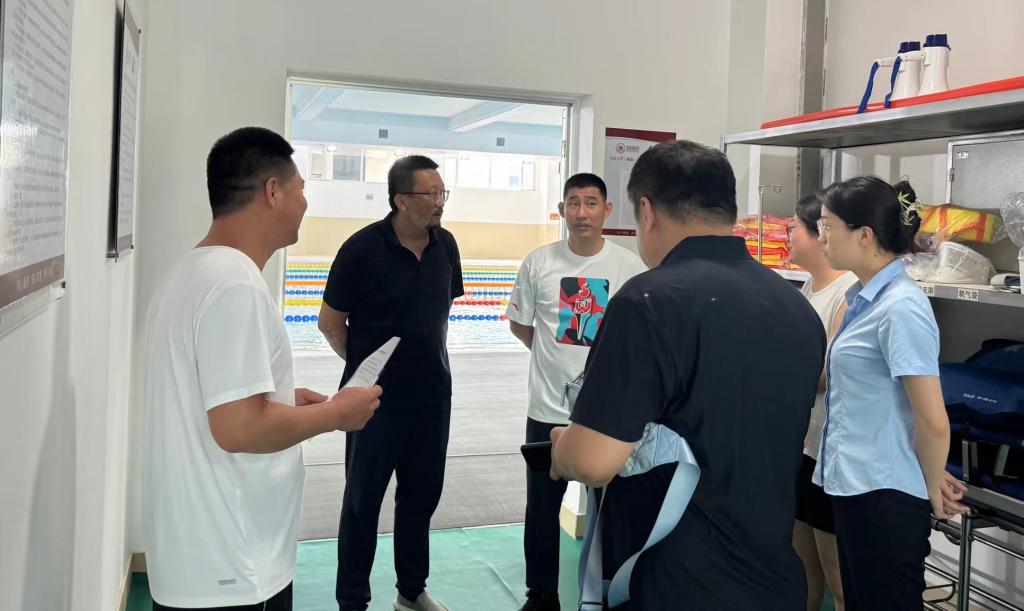 检查人员一同前往健身房、乒乓球馆、篮排球馆、游泳馆和羽毛球馆等场地对消防安全、建筑安全、器材安全等重点领域逐一进行检查并现场听取了相关负责人的工作汇报,强调贯彻执行周检查月报告制度,并对暑期极端天气应对、消防安全与用电安全等问题提出了整改意见和建议。