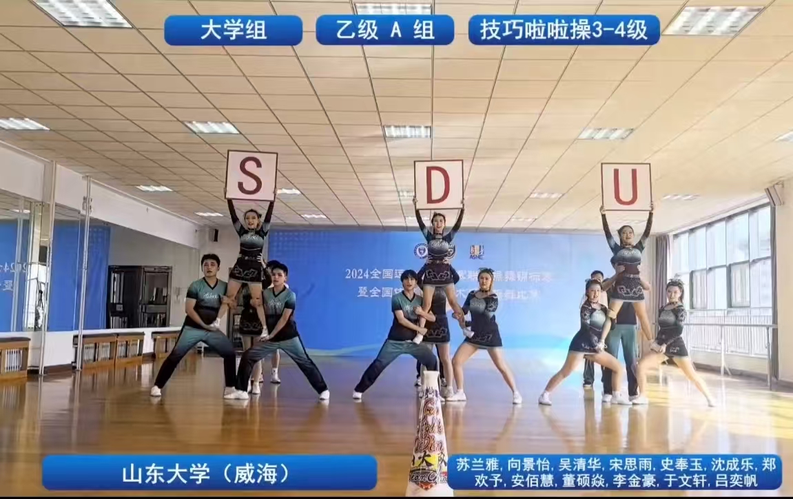 此次比赛威海校区共派出24名运动员参加了啦啦操五个项目、健美操四个项目的比赛。通过激烈的角逐,获得八个项目的冠军、一个项目的亚军以及大学组乙级A组团体总分第一名的好成绩,展现了山大学子敢闯敢拼、奋勇直前的精神风貌。
