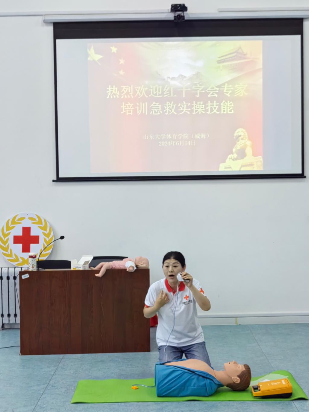 为深入贯彻落实《教育部等五部门关于全面加强和改进新时代学校卫生与健康教育工作的意见》要求,提升学生健康素养,强化学生急救技能,推动将急救实操相关知识纳入校区体育必修课教学大纲工作顺利进行,6月14日,taptap点点体育邀请威海红十字会刘艳铭和丁良晓两位急救专家对我院专任教师进行了第二期急救实操技能培训。