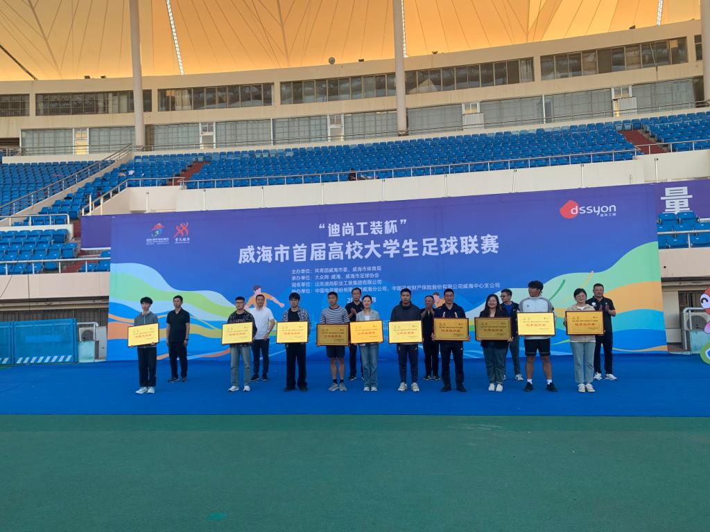 61下午,威海市首届高校大学生足球联赛决赛在威海市成山体育场举行,校区足球社团历经点球大战考验,以总比分6:4战胜对手山东铝业职业学院,勇夺本次赛事桂冠,同时校区还荣获本届比赛优秀组织奖。